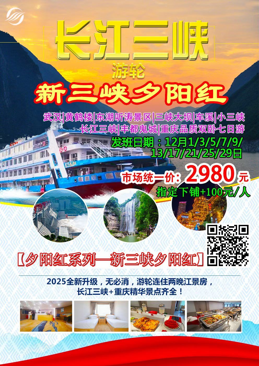 新三峽游輪夕陽紅雙臥8日游 2025-12-4 本文被閱讀 155 次