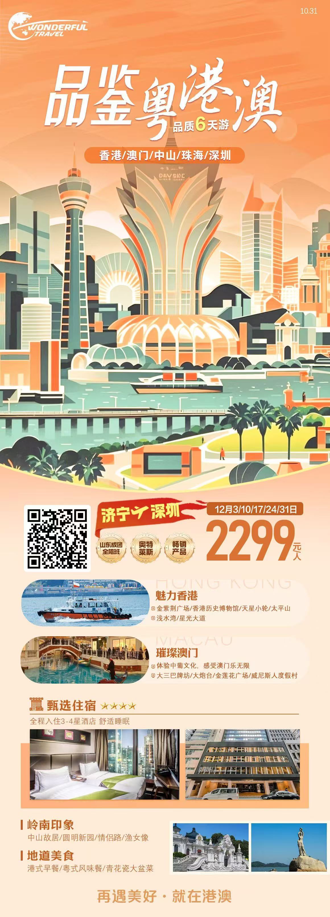 品鑒粵港澳濟(jì)寧深圳雙飛6日游 2025-12-16 本文被閱讀 133 次